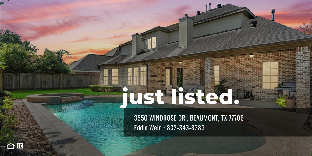 Welcome to your private backyard oasis in beautiful Barrington Heights! This stunning 5-bedroom, 4.5-bath home offers elegance and comfort, featuring a sparkling pool and spa surrounded by lush landscaping and a covered patio for year-round enjoyment. Inside, the bright open floor plan showcases soaring ceilings, custom millwork, and a chef’s kitchen with granite counters, stainless appliances, and a large island overlooking the living room with gas fireplace. The primary suite is a relaxing retreat with a fireplace, jetted tub, dual vanities, and walk-in closet. Upstairs you’ll find three bedrooms, a Jack & Jill bath, a media room with bar, and a game room with access to two finished attic spaces for storage. The first-floor guest suite adds flexibility for multi-generational living. A spacious 3-car garage is large enough to accommodate up to 21-ft boat. Conveniently located near ExxonMobil, Christus Health, Baptist Hospital, and Lamar University—close to shopping, dining!